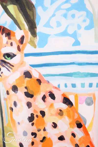 Schöner, bequemer Doite-Rock, Reißverschluss im Rücken, Seitentaschen, kleiner Schlitz im unteren Rückenbereich, leicht dehnbar, schöner Druck nach einem Gemälde von Karen Fields "Cheetah in the city 1". Fällt relativ klein aus. Zögern Sie nicht, uns wegen der Maße zu kontaktieren.