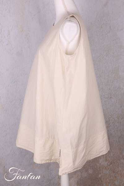 Ärmelloses Top Ewa I Walla Calida en voile aus leichter Baumwolle und Viskose, oatfarben, mit feinen Spitzenbändern und abgerundetem Halsausschnitt im Claudine-Stil. Ein zartes, leuchtendes Stück.