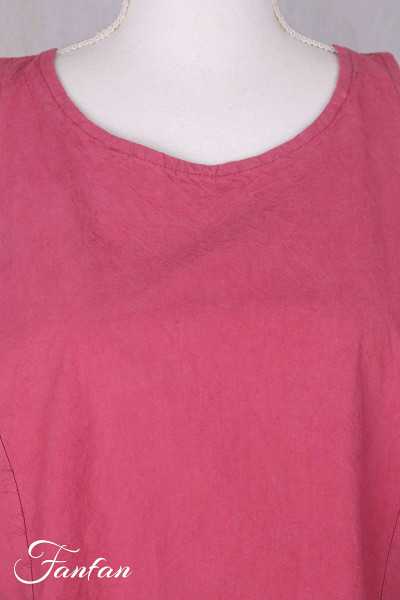 Schönes ärmelloses Kleid aus Bio-Baumwollpopeline in Knitteroptik, Rundhalsausschnitt, Trapezschnitt, in den Nähten versteckte Taschen. Kann allein oder als Basis für Lagenlooks getragen werden