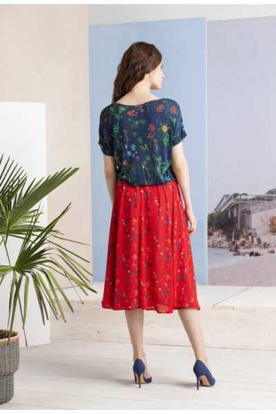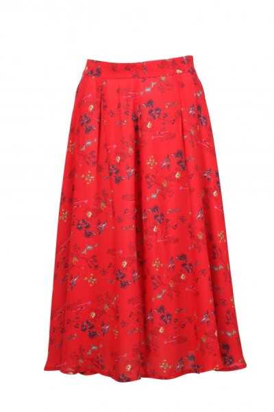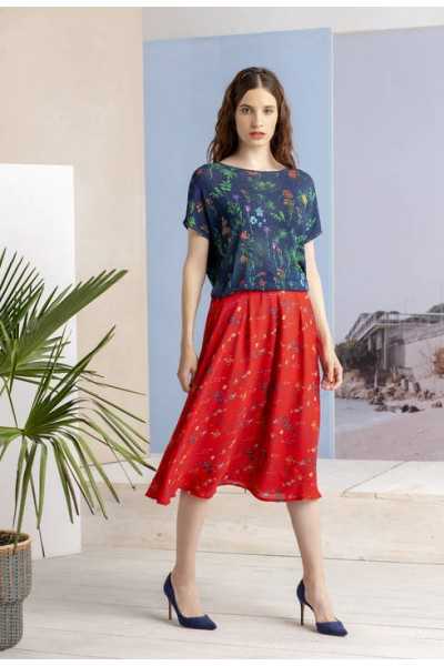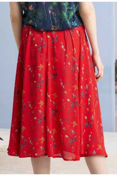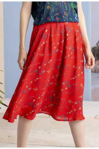 Luftiger Rock mit elegantem Blumenmuster und leicht lockerem Schnitt. Drapierter Saum, Falten auf der Oberfläche und taillierte Taille verändern Ihren lässigen Stil mit genau der richtigen Exklusivität.