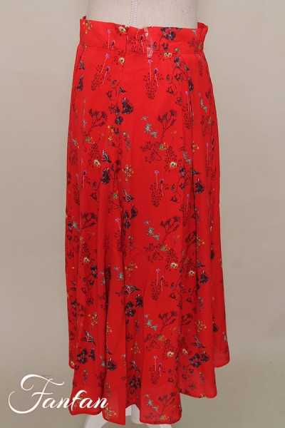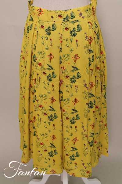 Fließender Rock mit wunderschönem malerischem Blumendrück, doppeltelm Reißverscluss, 3 Falten vorne und hinten