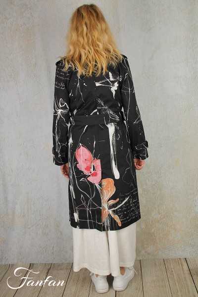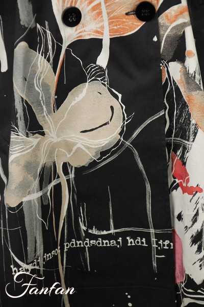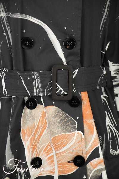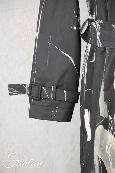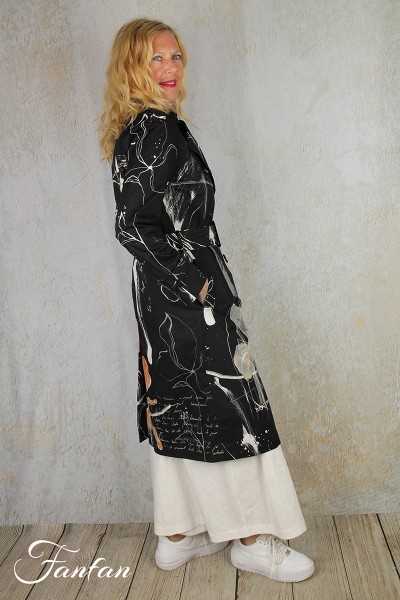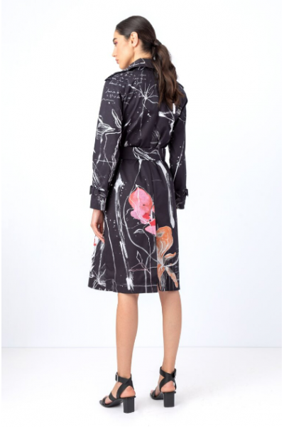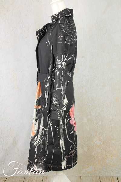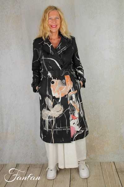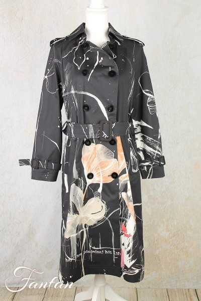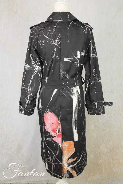 Wunderschöner Trenchcoat, zweireihig, Schulterklappen mit Knopf, Gürtel mit Schnalle Verbindung mit Schnalle an den Manschetten, Seitentaschen, Schlitz im unteren Rückenbereich, wunderschön bedruckt