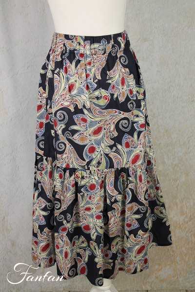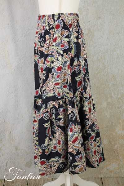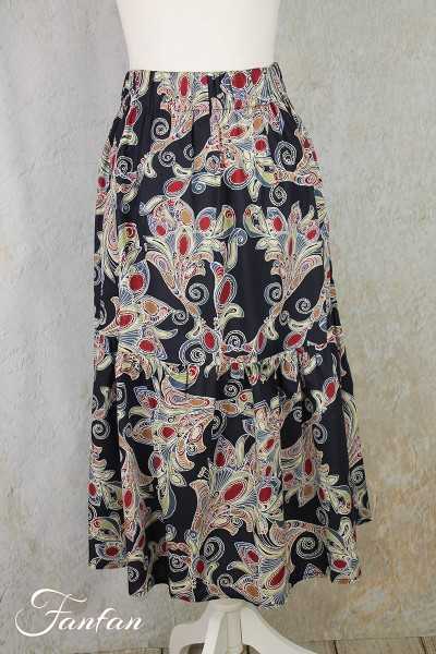 Sehr schöner, weiter Rock aus Baumwolle, sehr bequem und mit schönem Aufdruck; Bund mit Gummizug für Bequemlichkeit