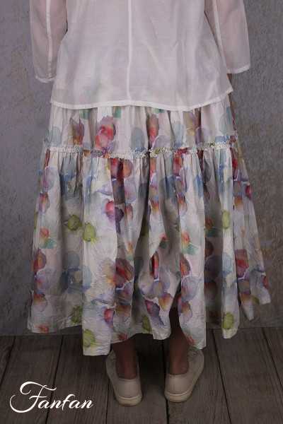 Très belle jupe en organza de coton composée de 3 volants, taille avec élastique. Peut se porter en jupe ou en jupon. Existe en tailles XS, M et XL