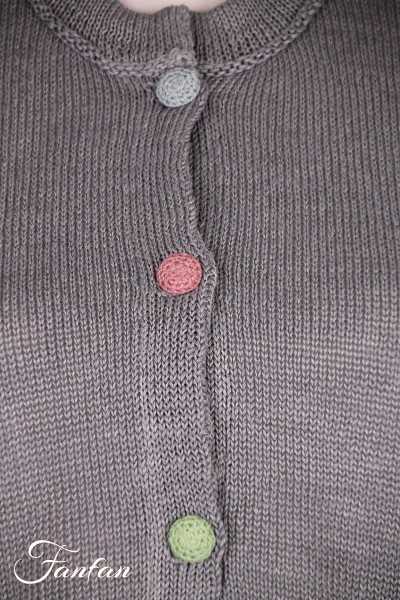 Très jolie veste en maille, manches longues tombantes, col V, trois grands boutons sur l'avant, rayures multicolores à coordonner avec de nombreuses tenues de votre garde-robe