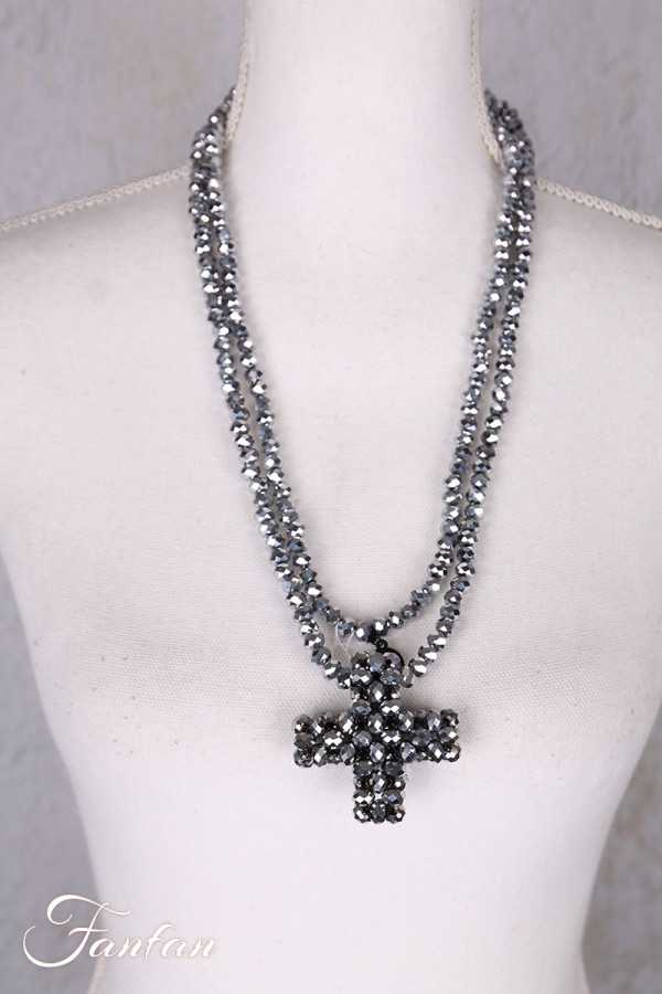 PLÜ-Plus la Vie Collier long perles grises avec Plus