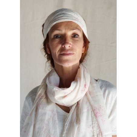 Très joli bandeau pour les cheveux en voile de coton, assorti aux pièces de la collection. Il possède une bande élastique à l'arrière.