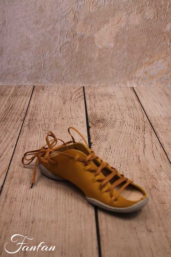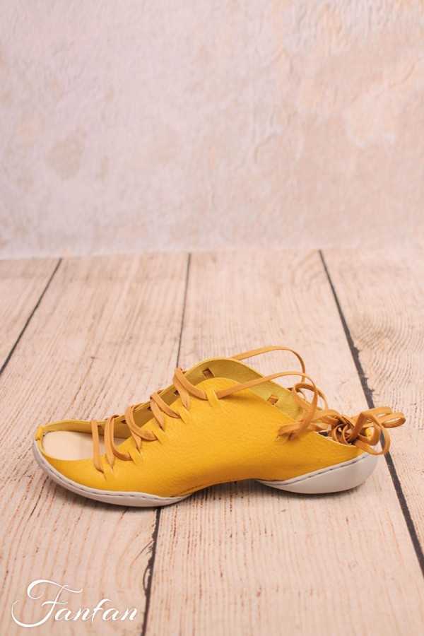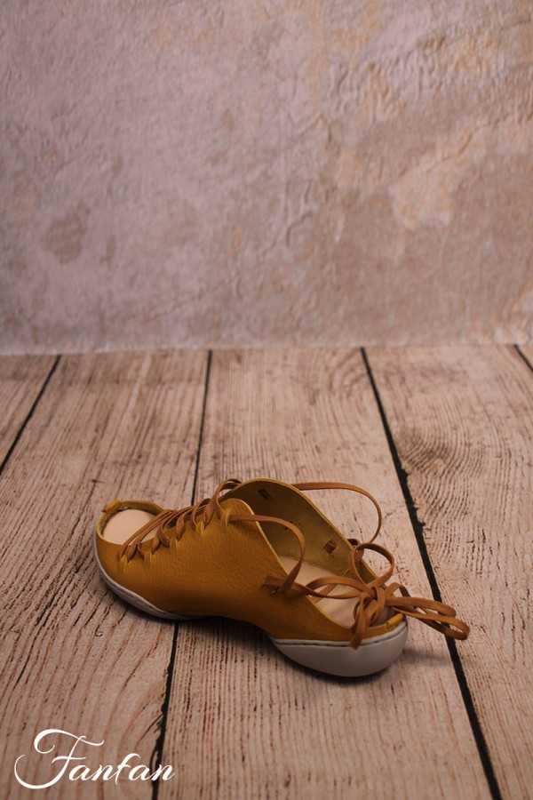 Sandale légère avec laçage linéaire pouvant être noué individuellement autour de la cheville.