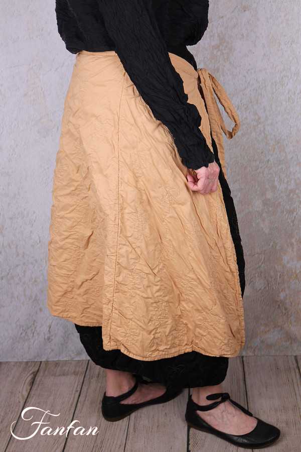 Superbe sur-jupe en coton matelassé rebrodé avec lien à nouer, coupe trapèze, à porter sur une jupe ou une robe pour parfaire votre look. Convient à toutes les silhouettes