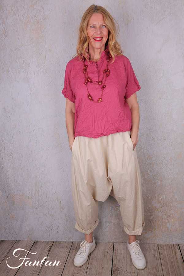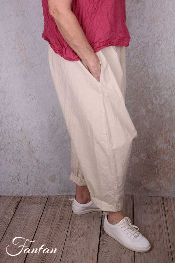 Superbe pantalon sarouel en coton popeline bio entièrement teinté à la main, taille unique avec élastique, entre-jambes bas, poches dans les coutures. Très joli également lorsqu'il est portes jambes retroussées. Une pièce à coordonner avec de nombreux vêtements tels que robes, tunique ou vestes.