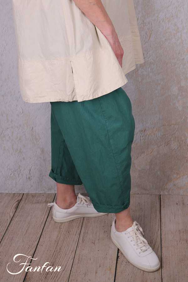 Superbe pantalon sarouel en coton popeline bio entièrement teinté à la main, taille unique avec élastique, entre-jambes bas, poches dans les coutures. Très joli également lorsqu'il est portes jambes retroussées. Une pièce à coordonner avec de nombreux vêtements tels que robes, tunique ou vestes.