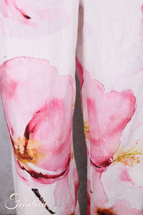 Dolcezza Pantalon 26684 Yuri Kraft Lin à fleurs