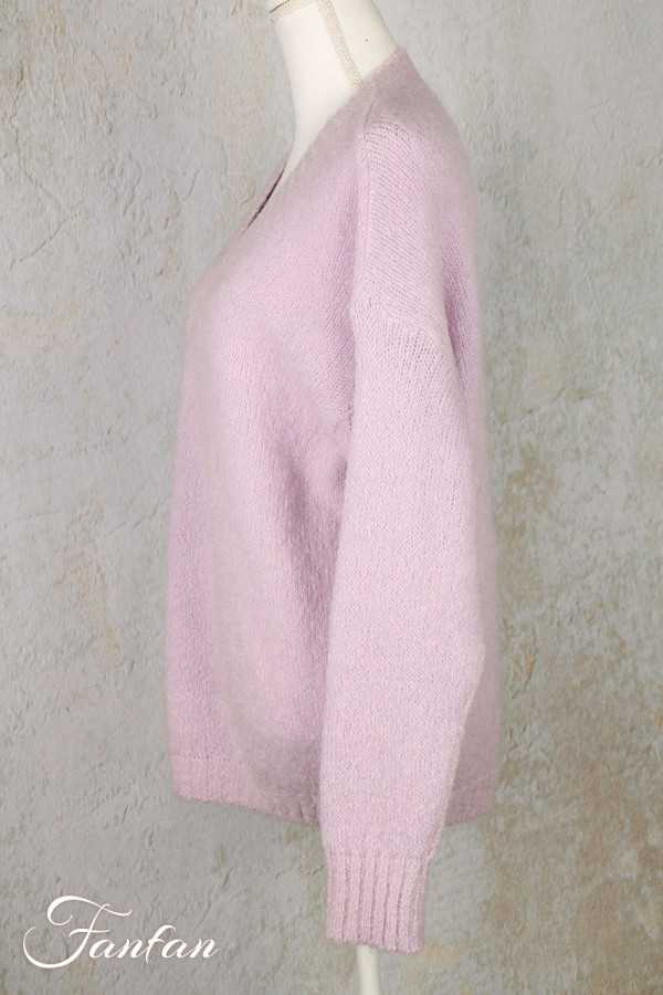 Les Tricots d'O Pullover lilas-rose poudré fait main Kid Mohair