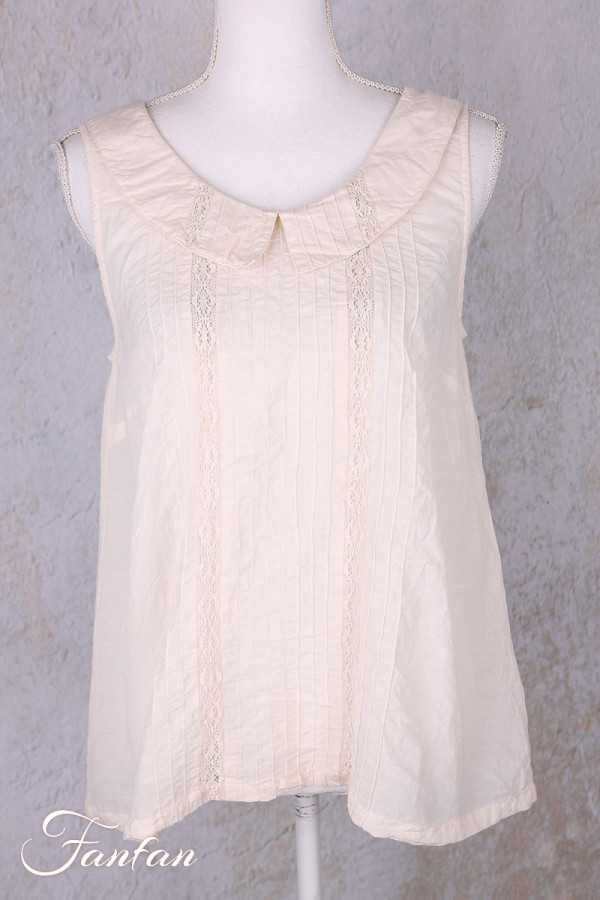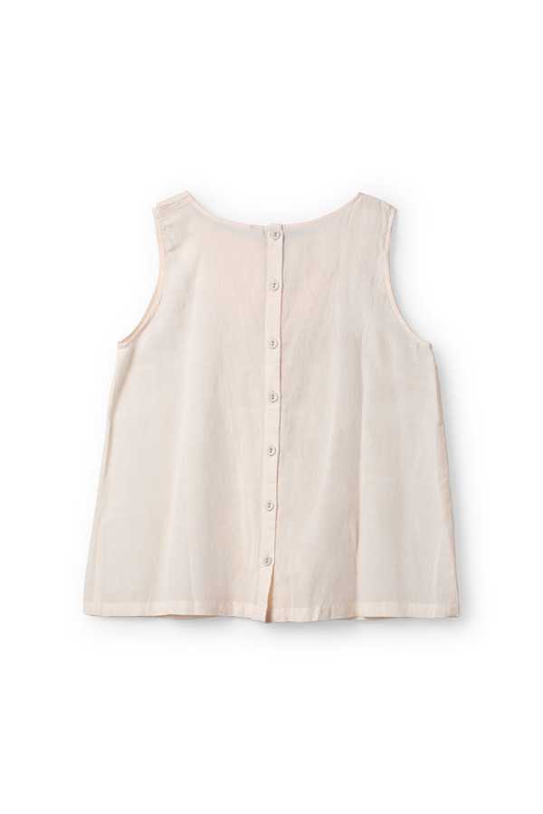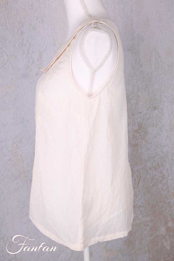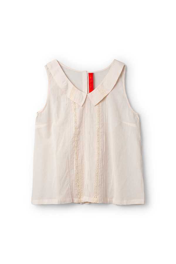Top sans manches Ewa I Walla Calida en voile léger coton et viscose, couleur oat, avec fines bandes de dentelle et col arrondi esprit Claudine. Une pièce délicate et lumineuse.