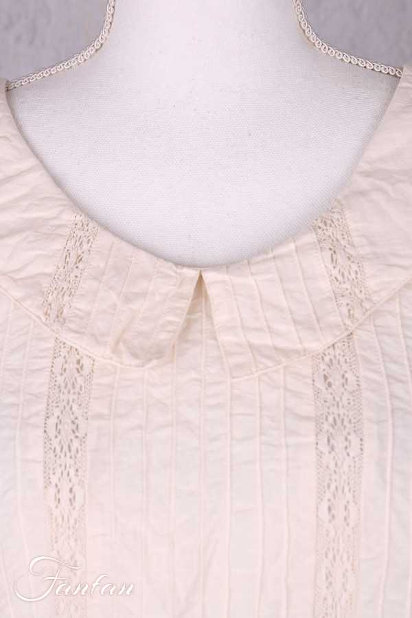 Le col arrondi, inspiré du col Claudine, encadre le visage avec douceur et apporte une touche romantique à l’ensemble. Le boutonnage à l’arrière renforce le charme discret de la pièce.