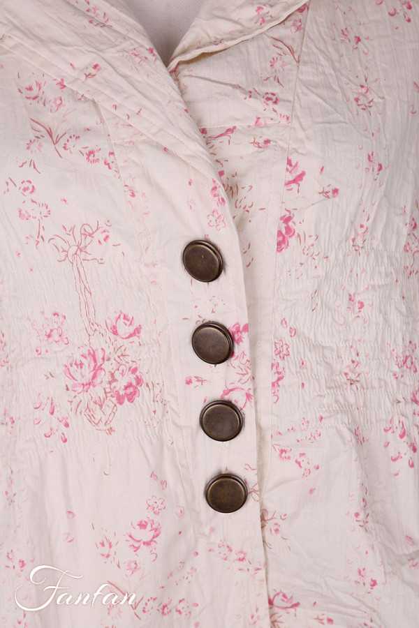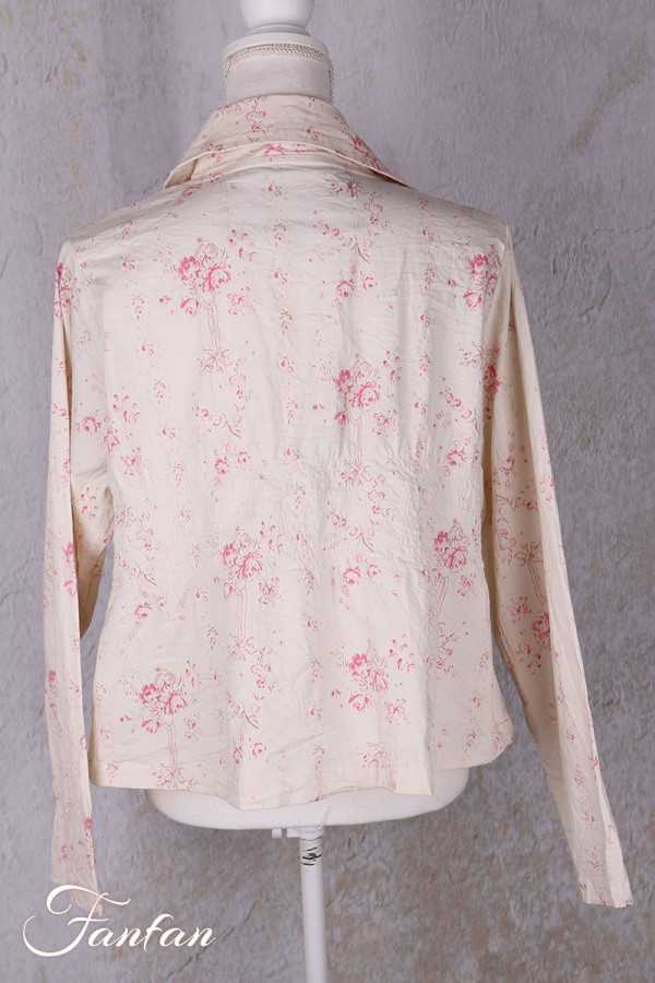 Très belle veste courte en coton , manches longues, col V avec double revers, 4 boutons en fer sur l'avant, smockée à la taille devant-derrière