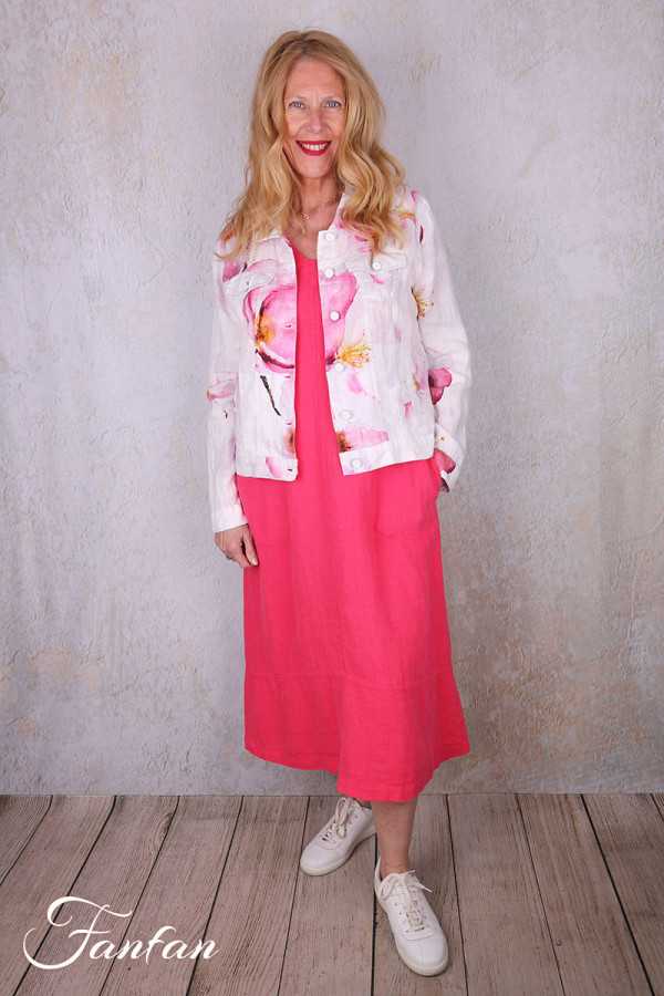 Très beau blouson en lin avec imprimé tiré d'une oeuvre de Yuri Kraft "Colors of the spring",, manches longues avec fermeture par bouton aux poignets, col chemise, boutonné sur l'avant, 2 poches à rabat sur la poitrine et 2 poches cachées dans le bas. N'hésitez pas à nous contacter pour avoir des mesures des tailles qui vous intéressent.