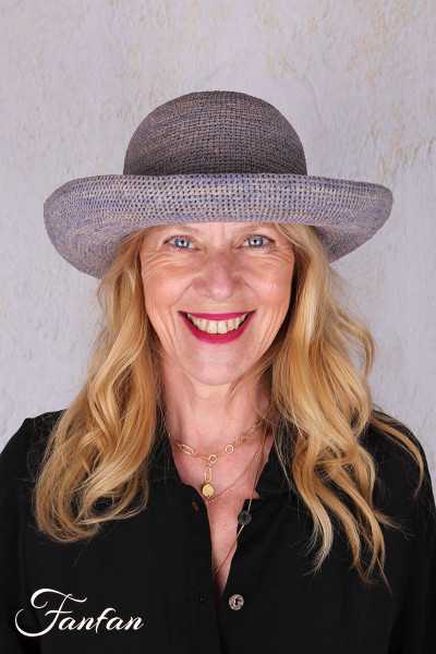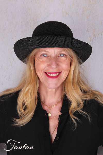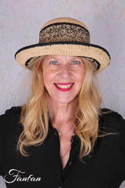 Beautiful one-size-fits-all raffia hat with ribbon that adjusts to the shape of your head. Lightweight, it can take many shapes and fold up into your bag or suitcase, returning to its original form. Handcrafted in a fair-trade workshop in Madagascar.
