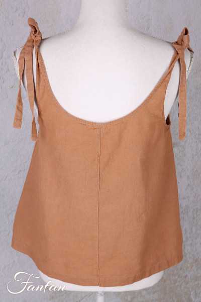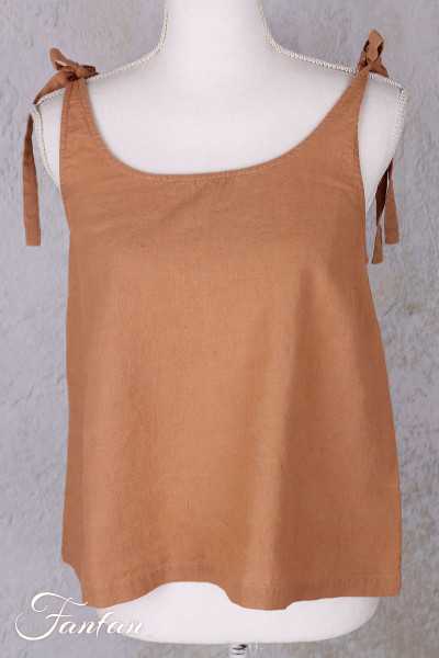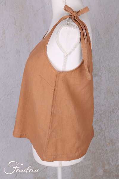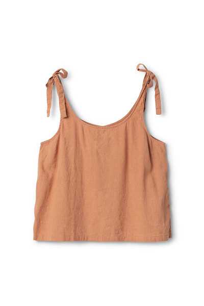 oli sleeveless top with shoulder straps and tie fastening in cotton and linen, trapeze cut