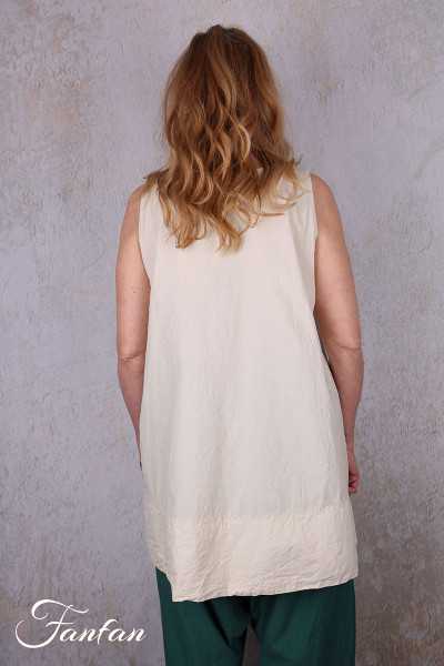 Sleeveless top Ewa I Walla Calida in voile light cotton and viscose, oat color, with fine lace bands and rounded Claudine collar. A delicate, luminous piece.
